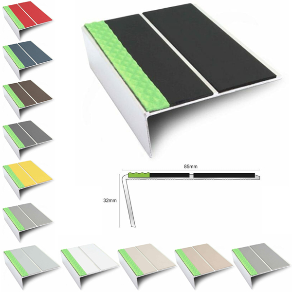 Tredsafe Aluminium Non Slip Stair Nosing Edge Trim With Pvc Insert 85 x 32mm